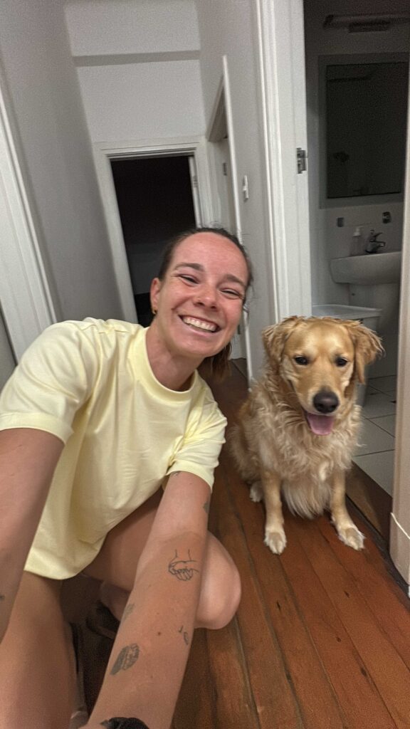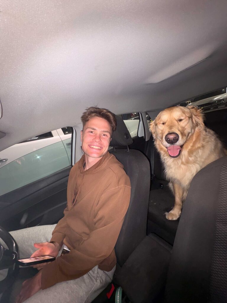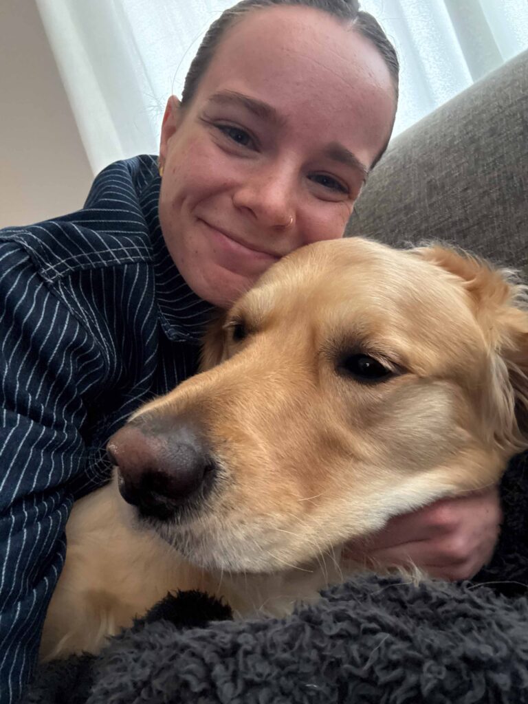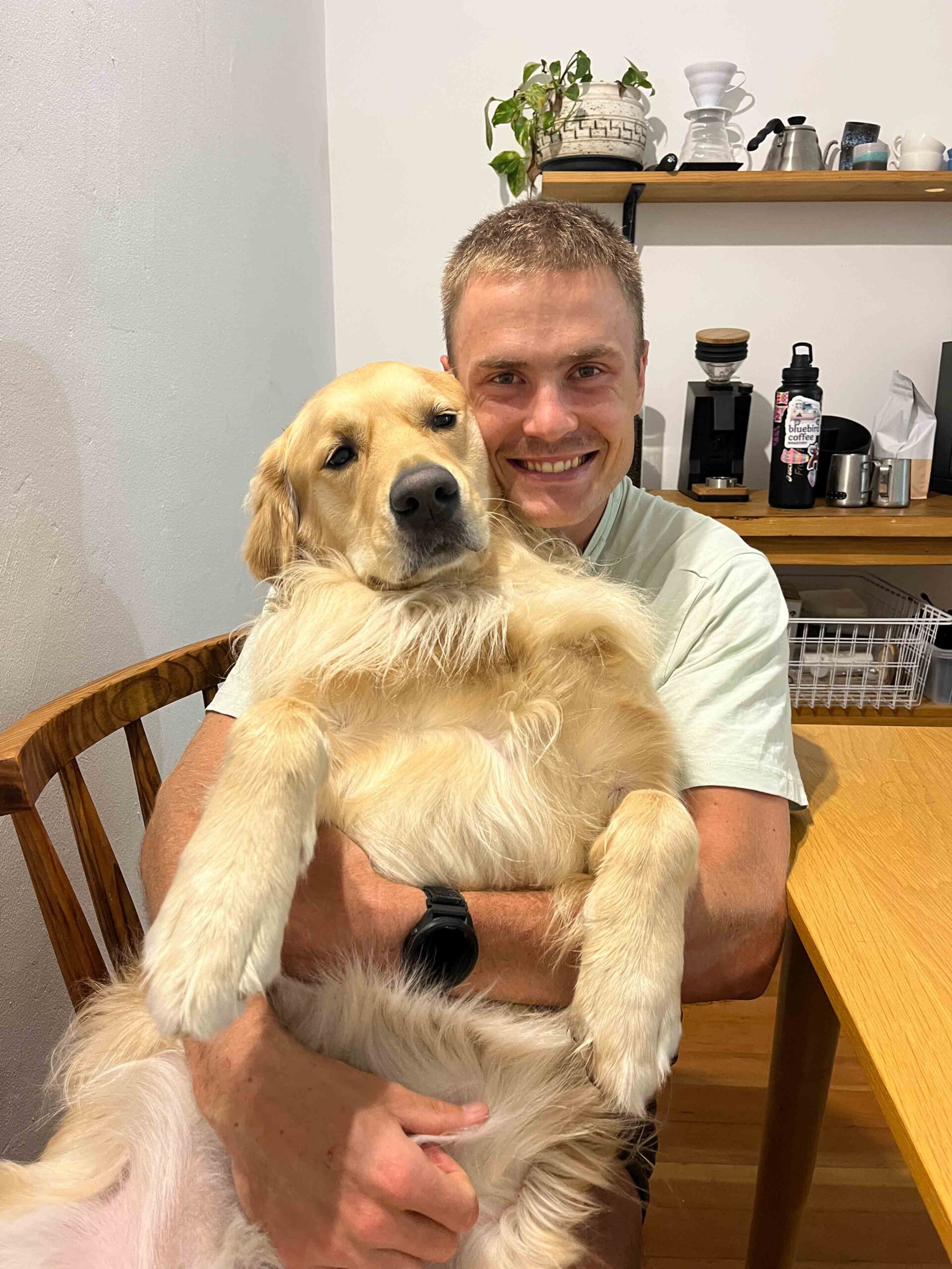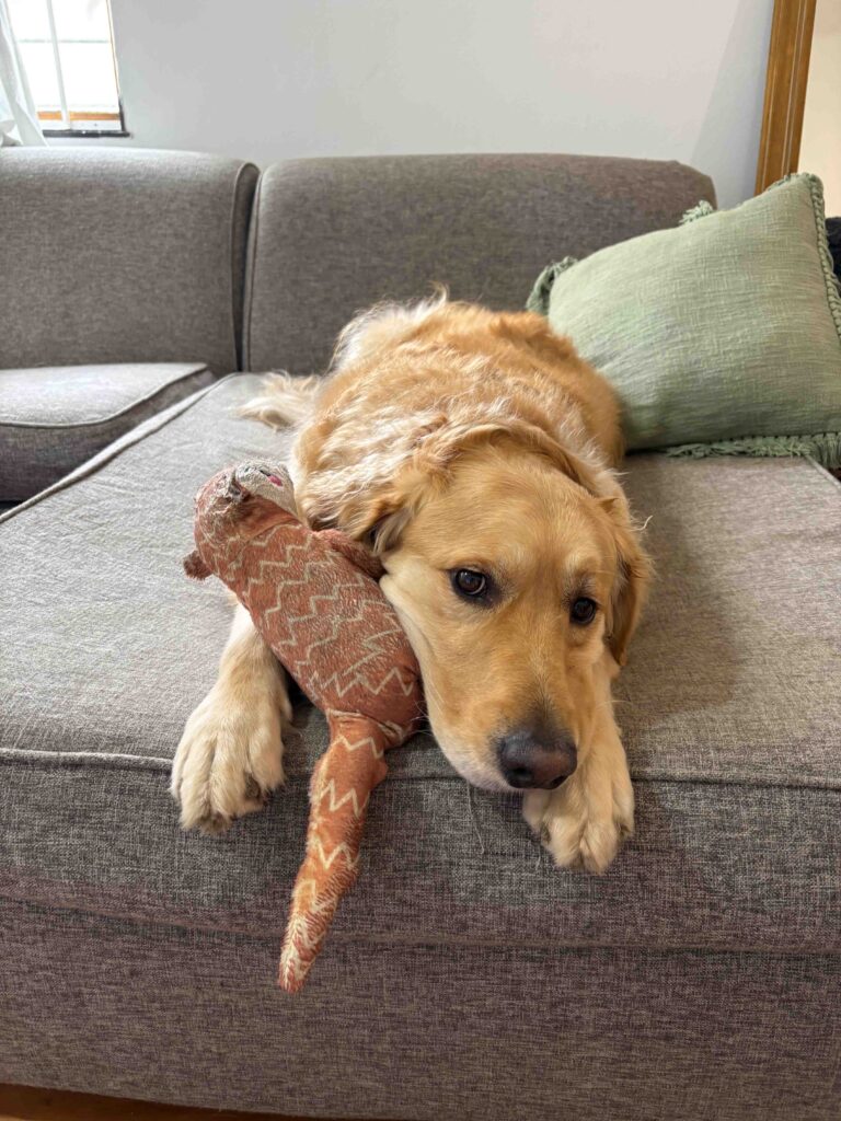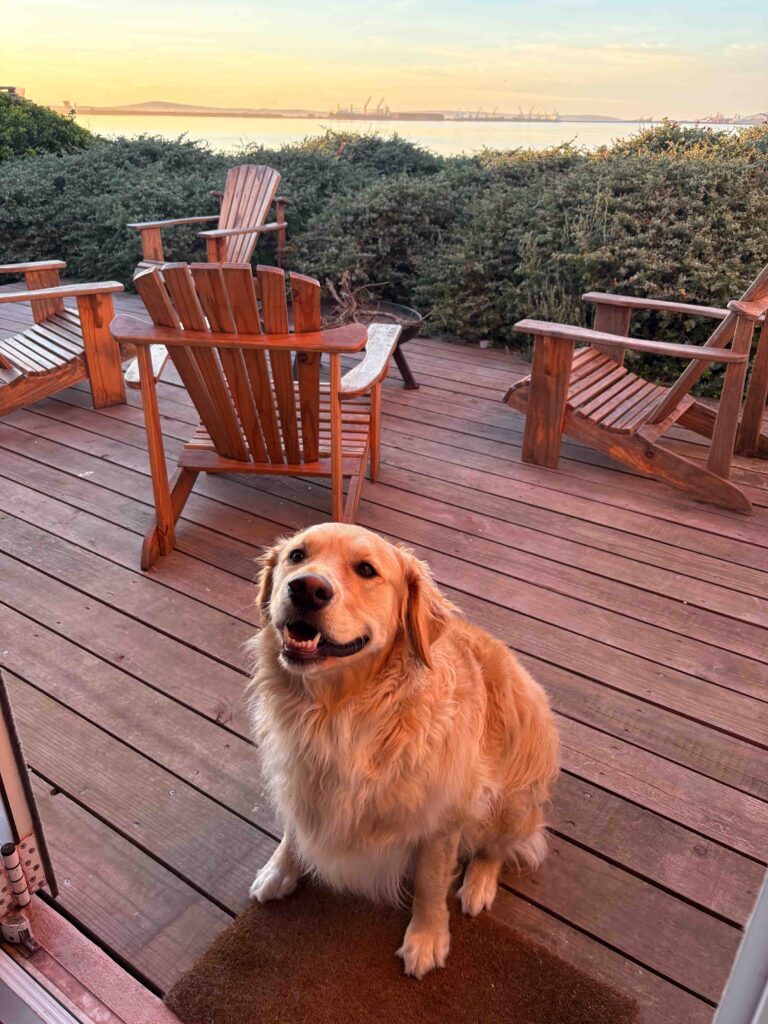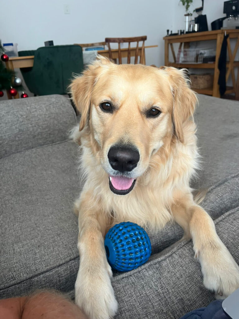 Our Golden Retriever, Bennie, is our child and we’re obsessed with him. He’s a little crazy and gets uber-excited meeting new people, and we can’t live without him.